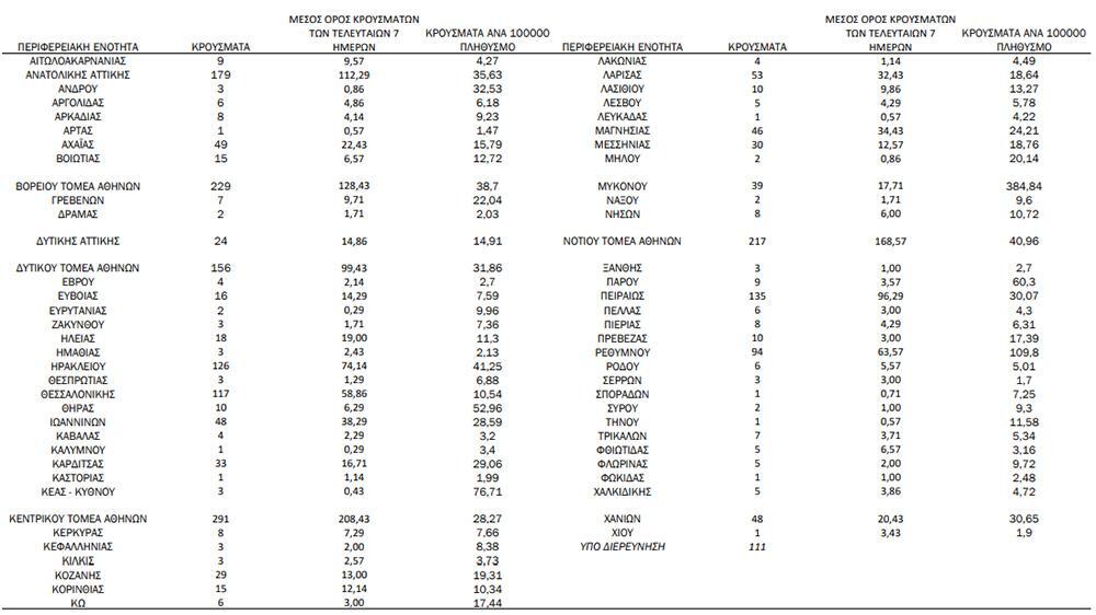 Αναλυτικότερα τα κρούσματα στις περιφερειακές ενότητες που ανήκουν στην Αττική: