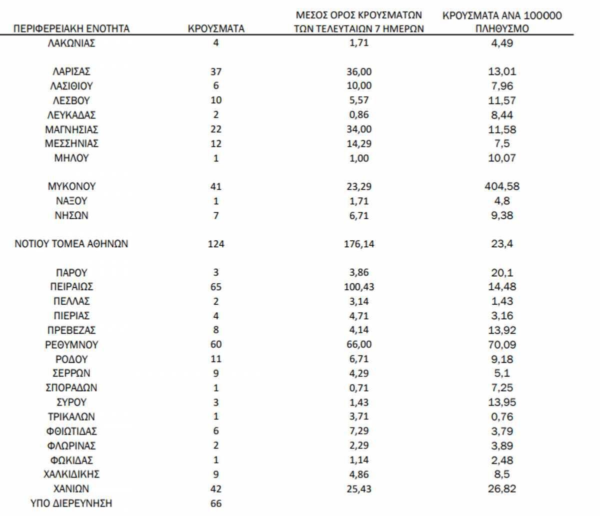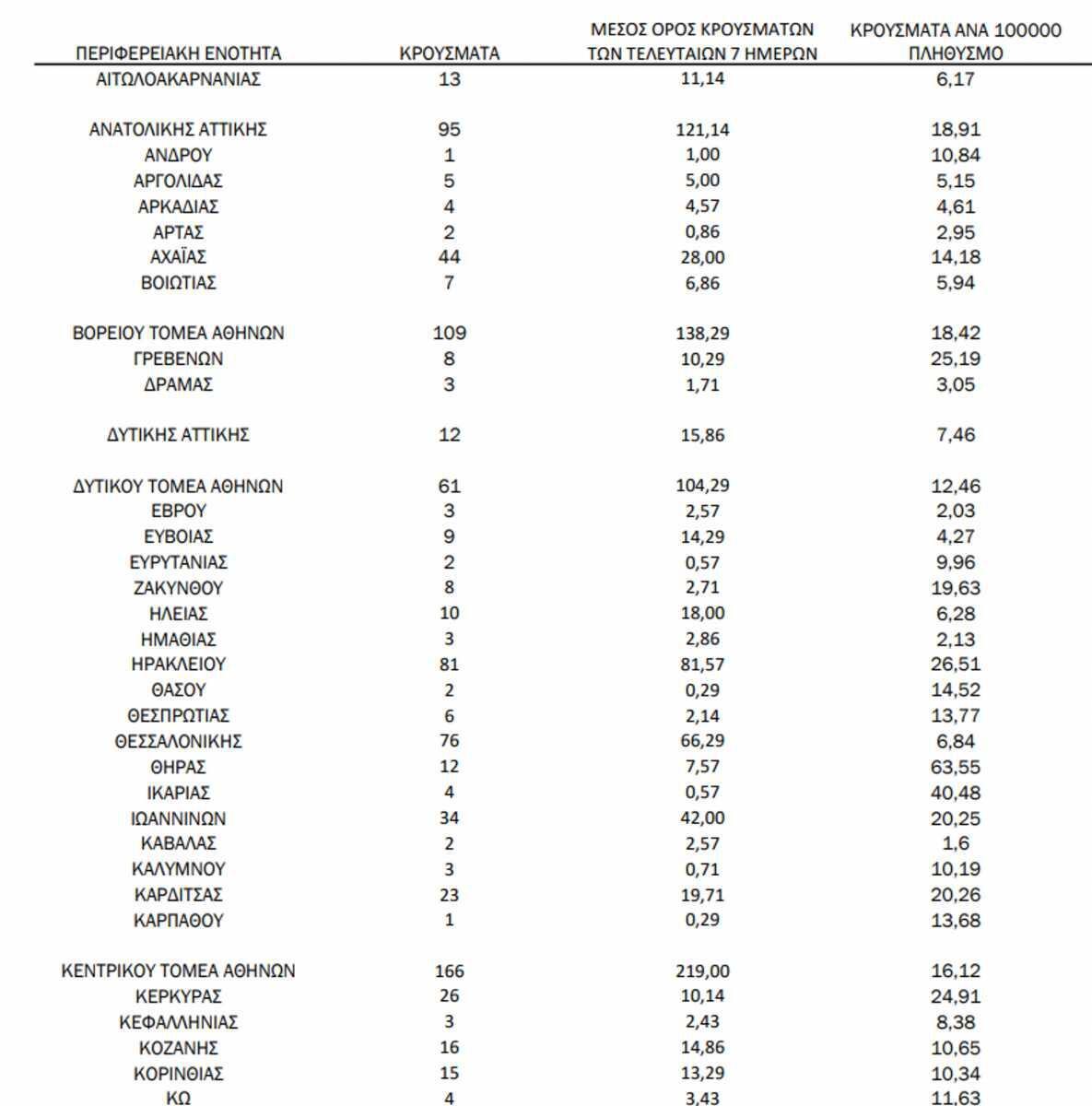 Αναλυτικότερα τα κρούσματα στις περιφερειακές ενότητες που ανήκουν στην Αττική: