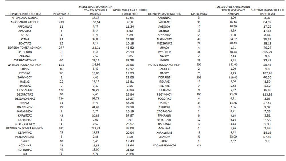 Αναλυτικότερα τα κρούσματα στις περιφερειακές ενότητες που ανήκουν στην Αττική:
