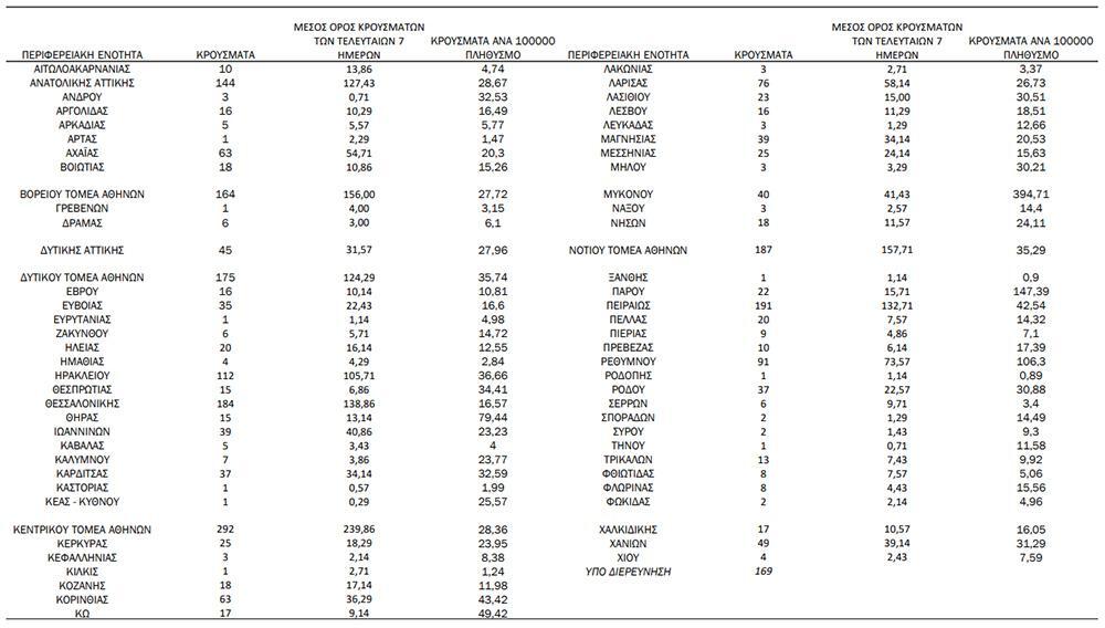 Αναλυτικότερα τα κρούσματα στις περιφερειακές ενότητες που ανήκουν στην Αττική: