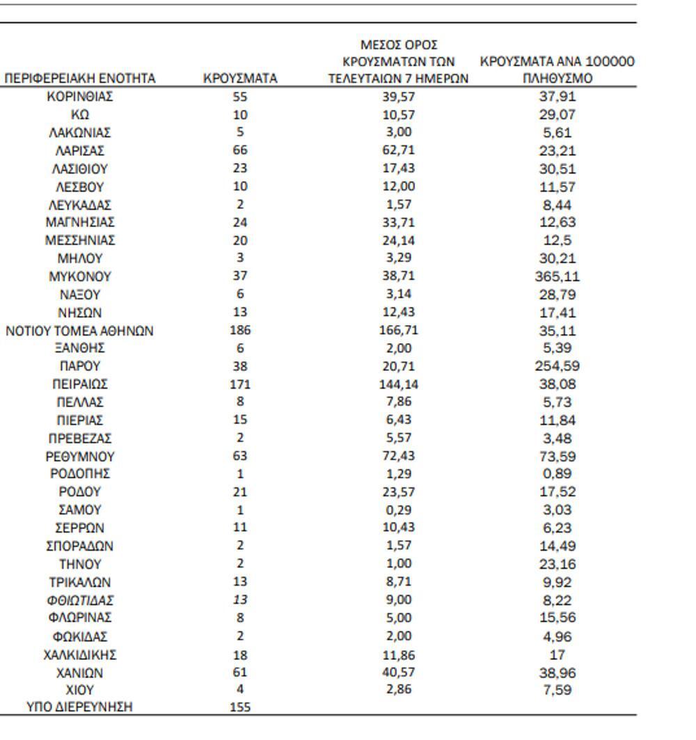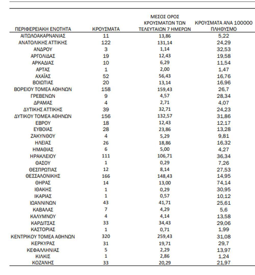 Αναλυτικότερα τα κρούσματα στις περιφερειακές ενότητες που ανήκουν στην Αττική: