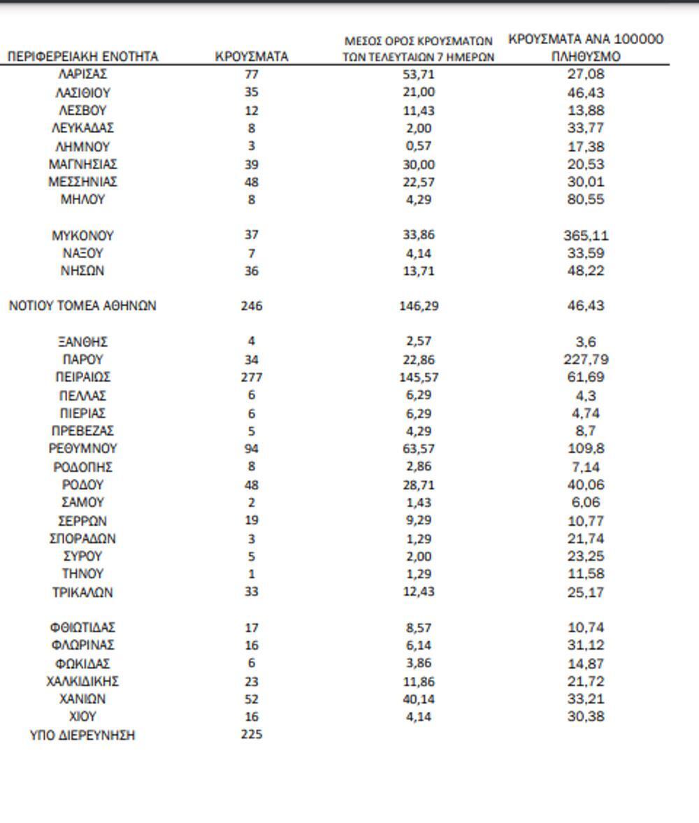 Αναλυτικά, η γεωγραφική κατανομή των σημερινών κρουσμάτων: