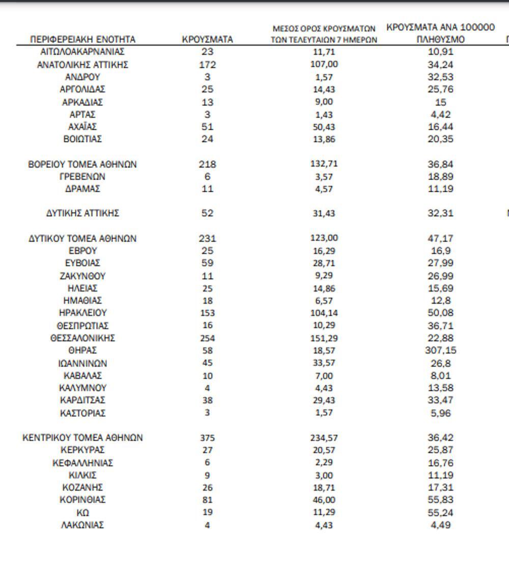 Αναλυτικότερα τα κρούσματα στις περιφερειακές ενότητες που ανήκουν στην Αττική: