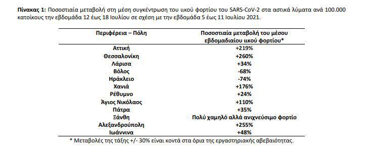 Οι αυξητικές μεταβολές κυμάνθηκαν από +34% στη Λάρισα έως +260% στη Θεσσαλονίκη. Οριακή κρίνεται η αύξηση στο Ρέθυμνο (+24%), ενώ πτωτικές μεταβολές καταγράφηκαν σε δύο από τις 12 περιοχές του Εθνικού Δικτύου Λυμάτων, και συγκεκριμένα στο Βόλο (-68%) και στο Ηράκλειο (-74%).