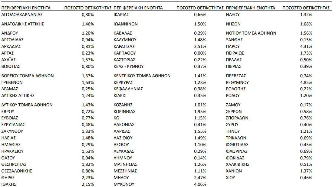 Το ποσοστό θετικότητας ανά περιφερειακή ενότητα