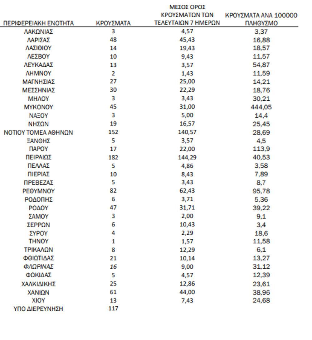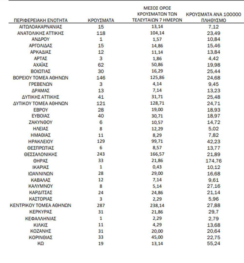 Αναλυτικότερα τα κρούσματα στις περιφερειακές ενότητες που ανήκουν στην Αττική: