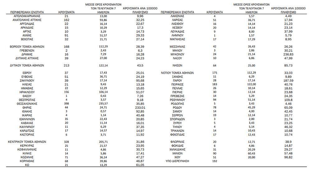 Αναλυτικότερα τα κρούσματα στις περιφερειακές ενότητες που ανήκουν στην Αττική: