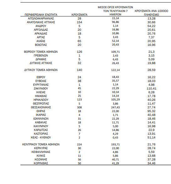 Αναλυτικότερα τα κρούσματα στις περιφερειακές ενότητες που ανήκουν στην Αττική: