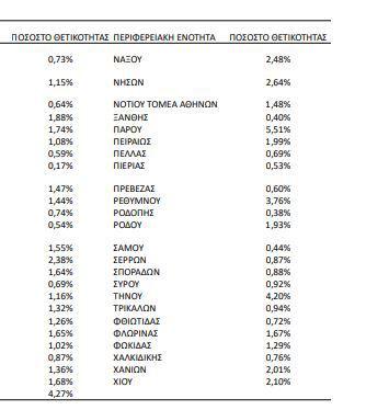 Επίσης ανησυχία υπάρχει για το το Ρέθυμνο με 3,76% και τη Σαντορίνη με 3,40%.