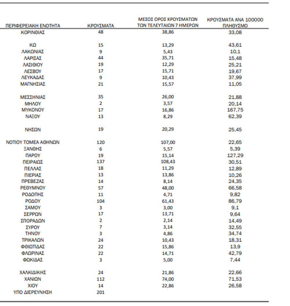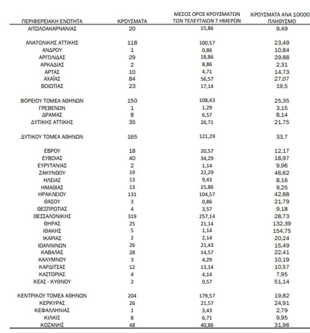 Αναλυτικότερα τα κρούσματα στις περιφερειακές ενότητες που ανήκουν στην Αττική: