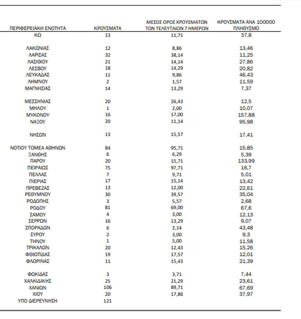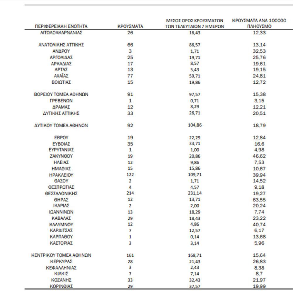 Αναλυτικότερα τα κρούσματα στις περιφερειακές ενότητες που ανήκουν στην Αττική:
