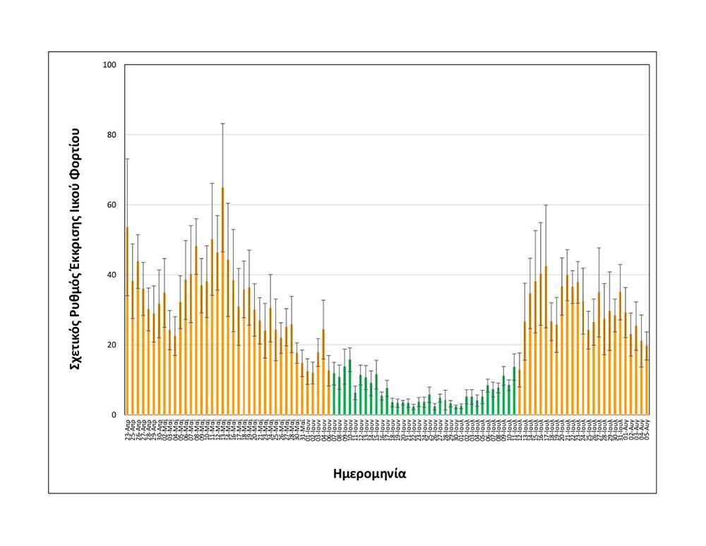 Όπως φαίνεται στα διαγράμματα που παρουσιάζει το ΑΠΕ-ΜΠΕ από τα τέλη Ιουλίου και τις πρώτες μέρες του Αυγούστου, πέρα από τις ημερήσιες διακυμάνσεις, η συνολική εικόνα δείχνει μία μικρή αποκλιμάκωση του ιικού φορτίου, που με βάση και τη συσχέτιση με την κλινική εικόνα και τα ημερήσια κρούσματα που έχουν ανακοινωθεί τις αντίστοιχες μέρες από τον ΕΟΔΥ, αποδίδεται από την ομάδα του ΑΠΘ, στην αναχώρηση από την πόλη για διακοπές, πιθανώς αρκετών ασυμπτωματικών φορέων του ιού.