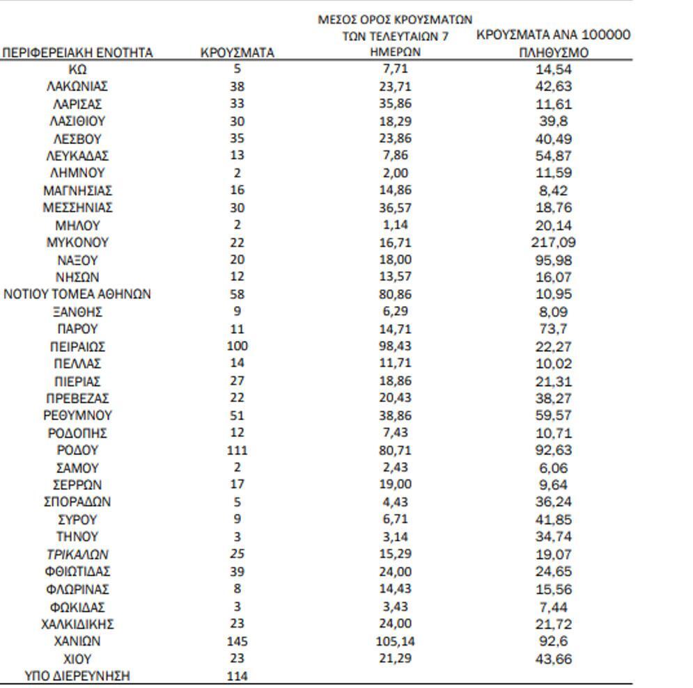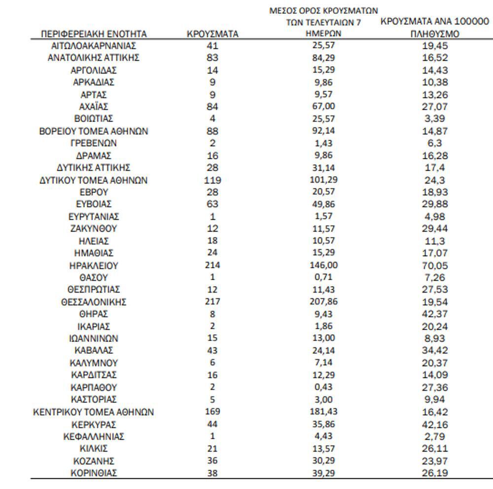 Αναλυτικά, η γεωγραφική κατανομή των σημερινών κρουσμάτων: