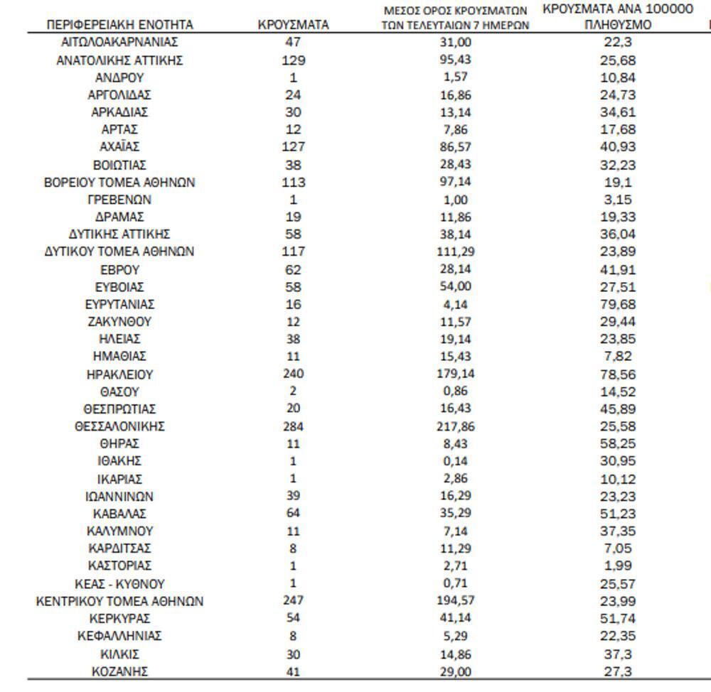 Αναλυτικά, η γεωγραφική κατανομή των σημερινών κρουσμάτων: