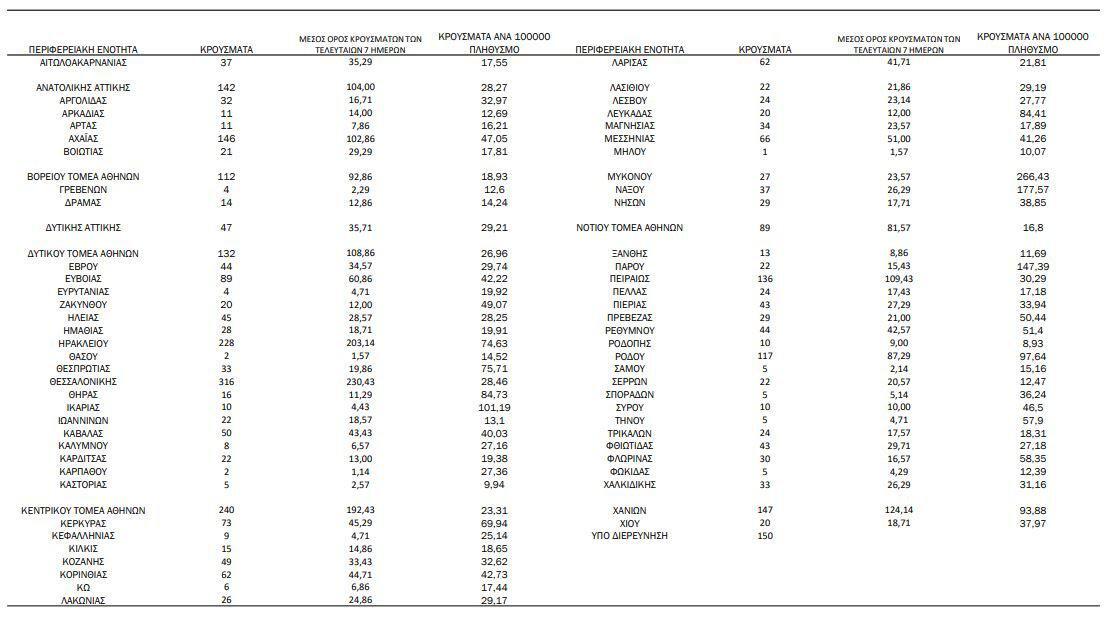 Αναλυτικότερα τα κρούσματα στις περιφερειακές ενότητες που ανήκουν στην Αττική: