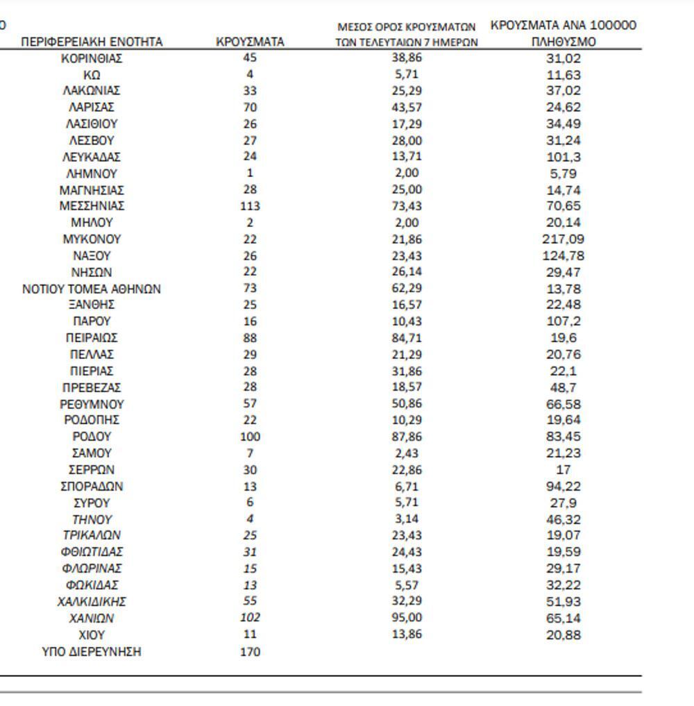 Αναλυτικά, η γεωγραφική κατανομή των σημερινών κρουσμάτων: