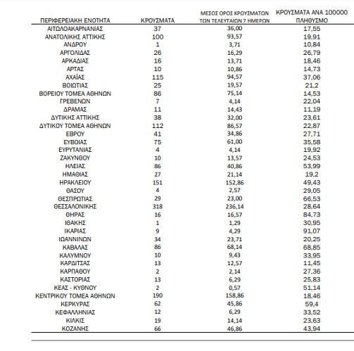 Αναλυτικότερα τα κρούσματα στις περιφερειακές ενότητες που ανήκουν στην Αττική:
