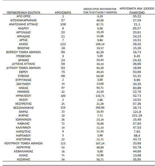 Αναλυτικά, η γεωγραφική κατανομή των σημερινών κρουσμάτων: