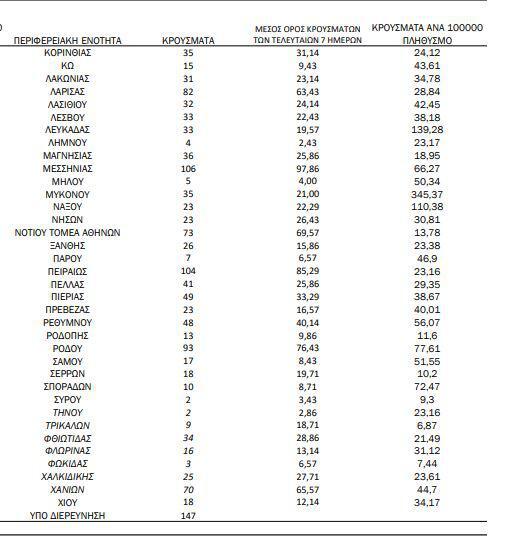 Αναλυτικότερα τα κρούσματα στις περιφερειακές ενότητες που ανήκουν στην Αττική: