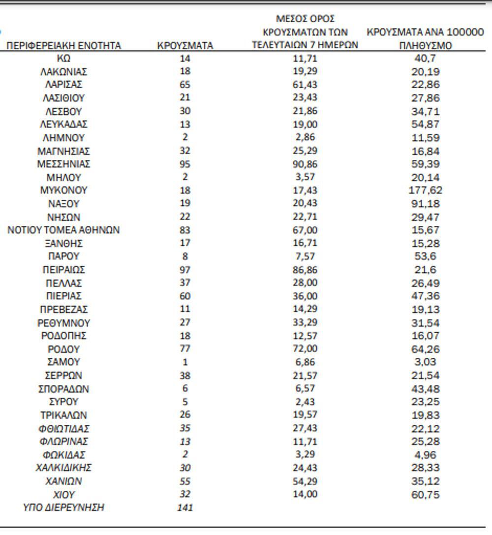 Αναλυτικότερα τα κρούσματα στις περιφερειακές ενότητες που ανήκουν στην Αττική: