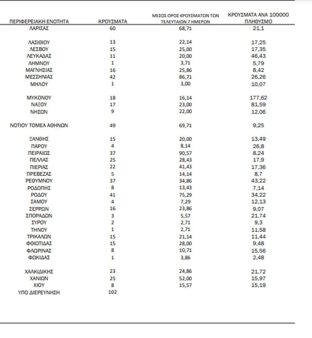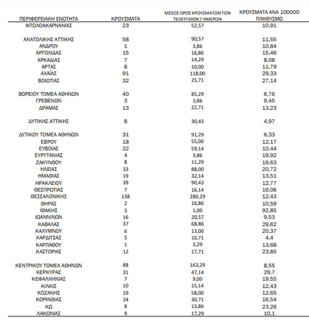 Αναλυτικότερα τα κρούσματα στις περιφερειακές ενότητες που ανήκουν στην Αττική: