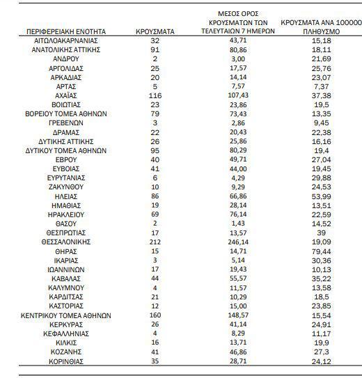 Αναλυτικά, η γεωγραφική κατανομή των σημερινών κρουσμάτων: