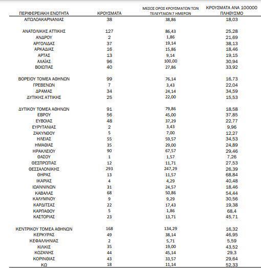 Αναλυτικότερα τα κρούσματα στις περιφερειακές ενότητες που ανήκουν στην Αττική: