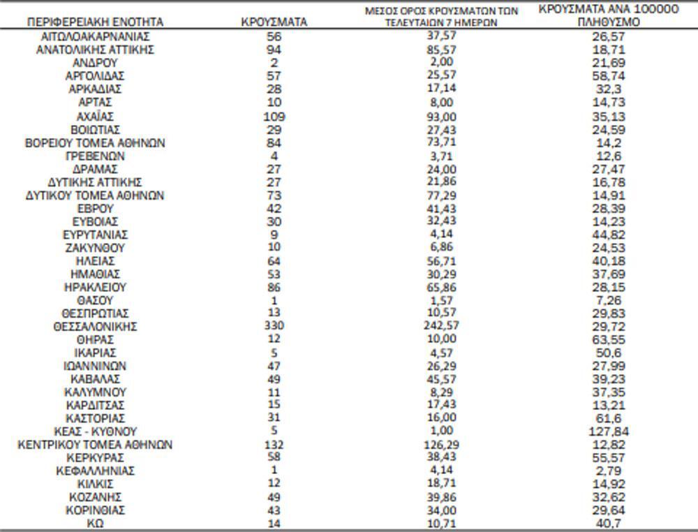 Αναλυτικά, η γεωγραφική κατανομή των σημερινών κρουσμάτων: