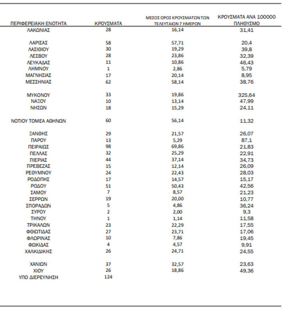 Αναλυτικότερα τα κρούσματα στις περιφερειακές ενότητες που ανήκουν στην Αττική: