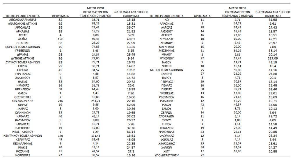Αναλυτικότερα τα κρούσματα στις περιφερειακές ενότητες που ανήκουν στην Αττική: