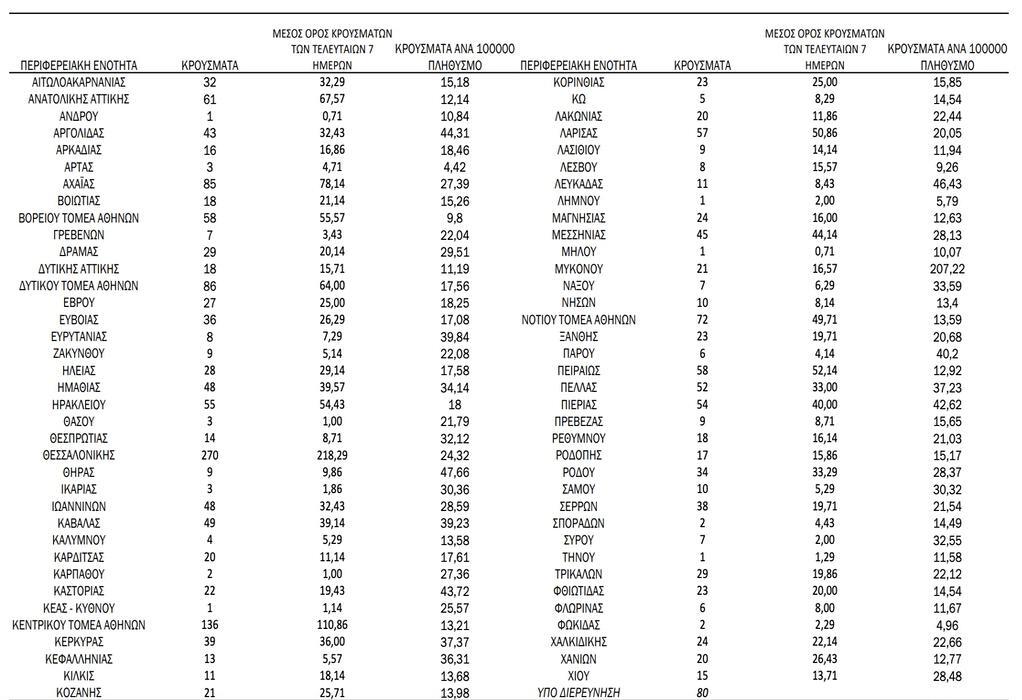Αναλυτικότερα τα κρούσματα στις περιφερειακές ενότητες που ανήκουν στην Αττική: