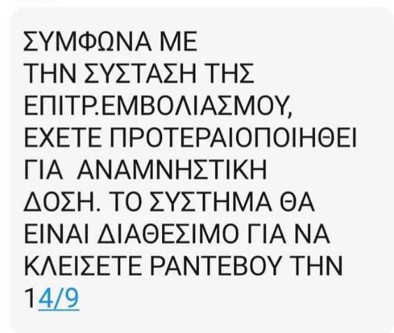 Έχουν αρχίσει και αποστέλλονται τα μηνύματα σε 285 χιλιάδες συμπολίτες μας που ανήκουν στις ομάδες που θα πρέπει να εμβολιαστούν με την ενισχυτική δόση.