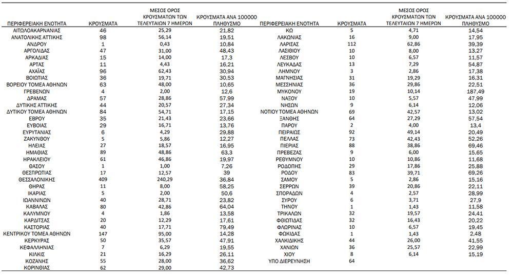 Αναλυτικά, η γεωγραφική κατανομή των σημερινών κρουσμάτων: