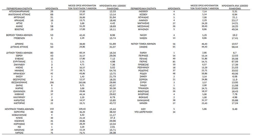 Αναλυτικά, η γεωγραφική κατανομή των σημερινών κρουσμάτων: