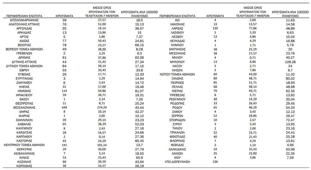 Αναλυτικά, η γεωγραφική κατανομή των σημερινών κρουσμάτων: