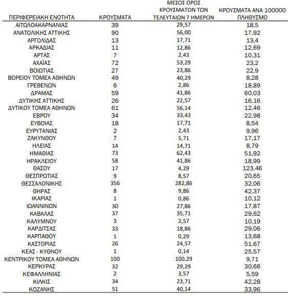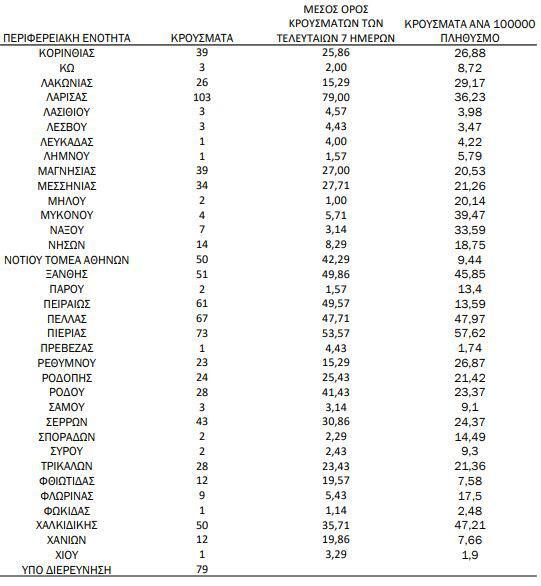 Αναλυτικά, η γεωγραφική κατανομή των σημερινών κρουσμάτων: