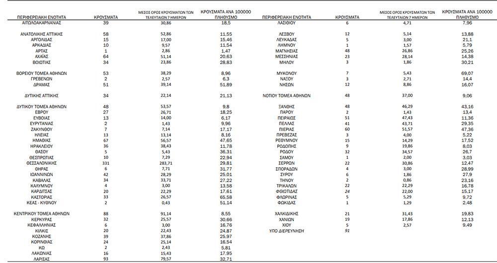 Αναλυτικά, η γεωγραφική κατανομή των σημερινών κρουσμάτων: