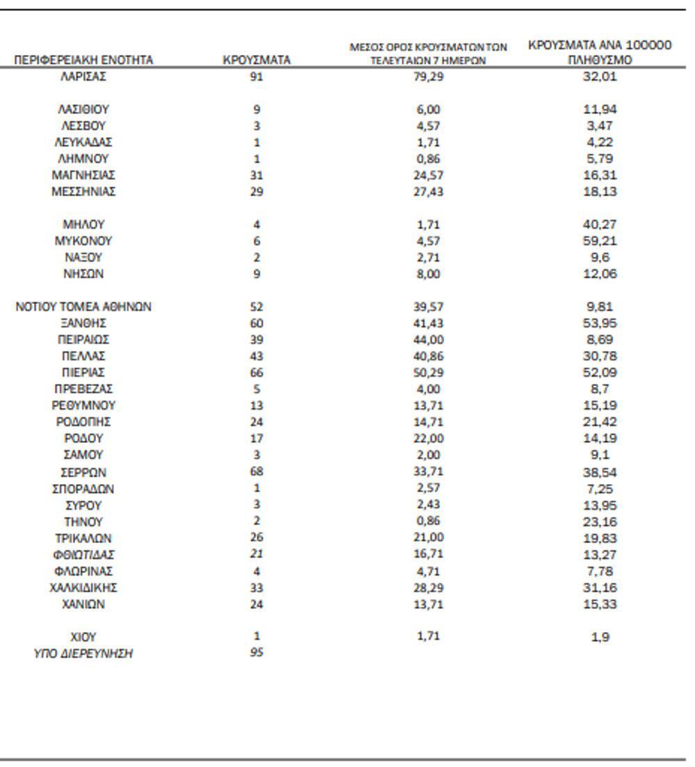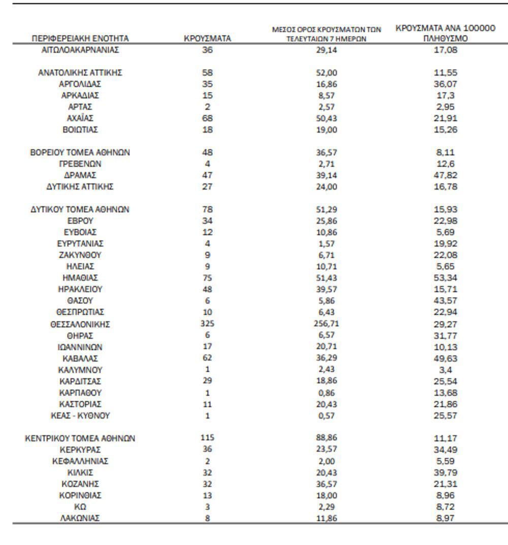 Αναλυτικότερα τα κρούσματα στις περιφερειακές ενότητες που ανήκουν στην Αττική: