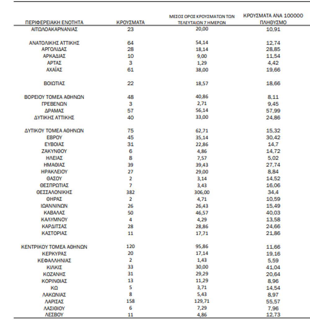 Αναλυτικά, η γεωγραφική κατανομή των σημερινών κρουσμάτων: