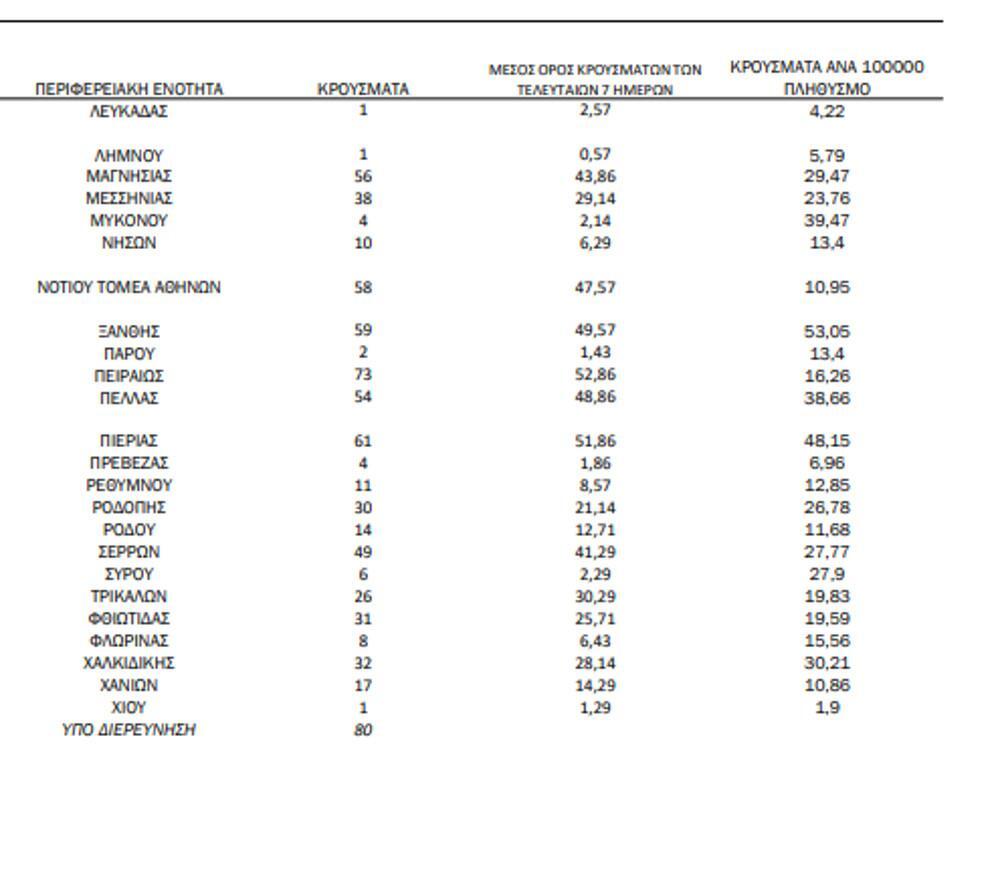 Αναλυτικότερα τα κρούσματα στις περιφερειακές ενότητες που ανήκουν στην Αττική: