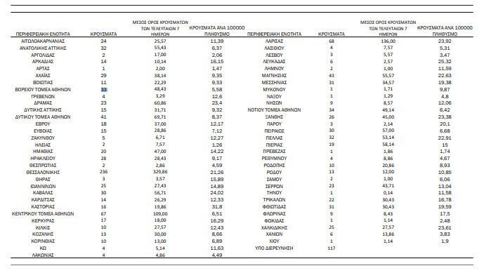 Αναλυτικότερα τα κρούσματα στις περιφερειακές ενότητες που ανήκουν στην Αττική: