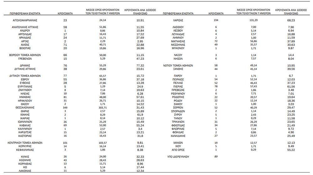 Αναλυτικά, η γεωγραφική κατανομή των σημερινών κρουσμάτων: