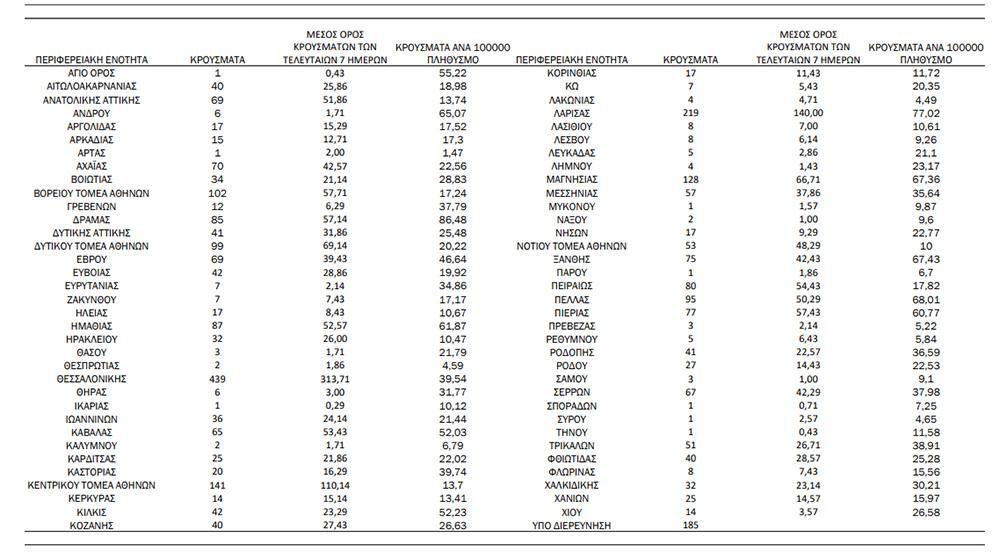 Αναλυτικότερα τα κρούσματα στις περιφερειακές ενότητες που ανήκουν στην Αττική: