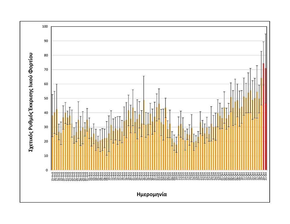 - Αυξημένη (+28%) σε σχέση με τη μέση τιμή των δύο αμέσως προηγούμενων μετρήσεων της Δευτέρας 18/10 και της Τρίτης 19/10.