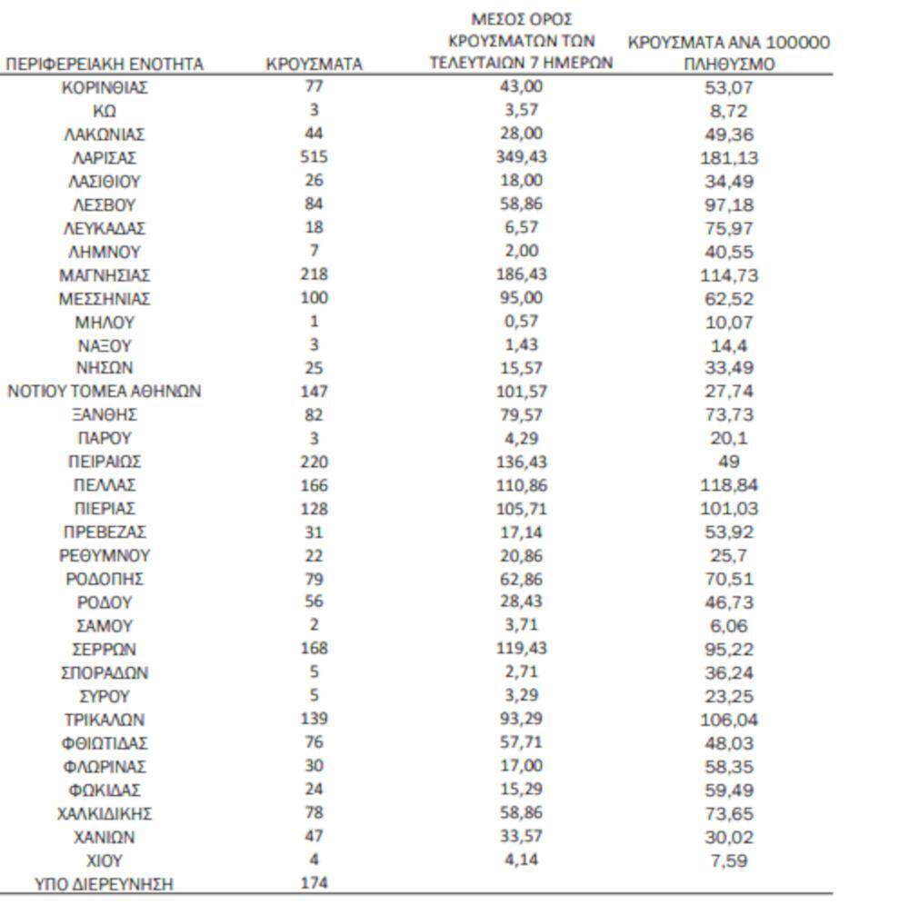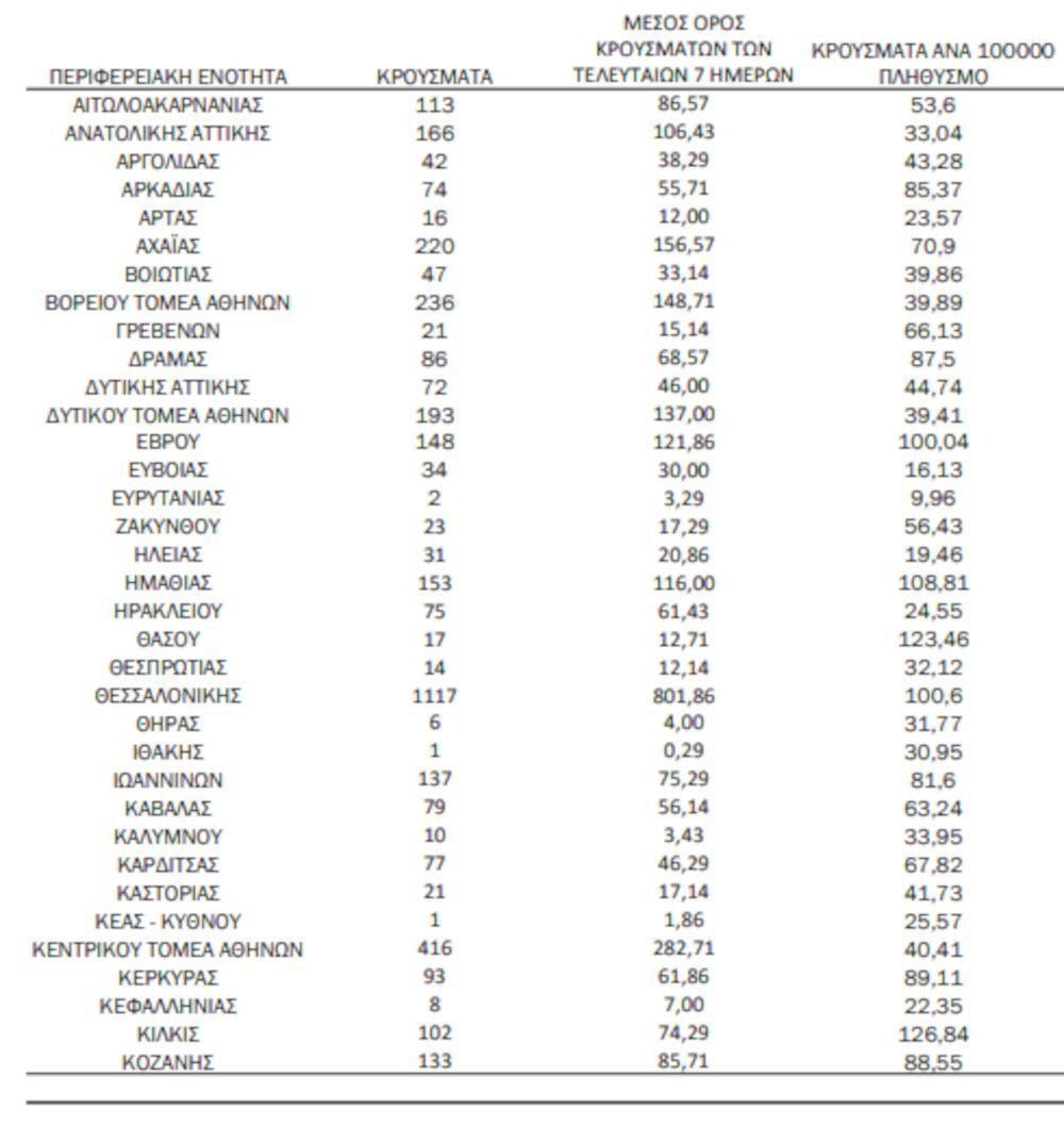Αναλυτικά, η γεωγραφική κατανομή των σημερινών κρουσμάτων: