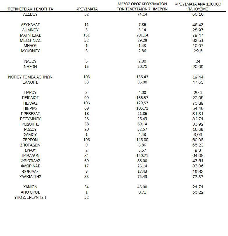 Αναλυτικά, η γεωγραφική κατανομή των σημερινών κρουσμάτων: