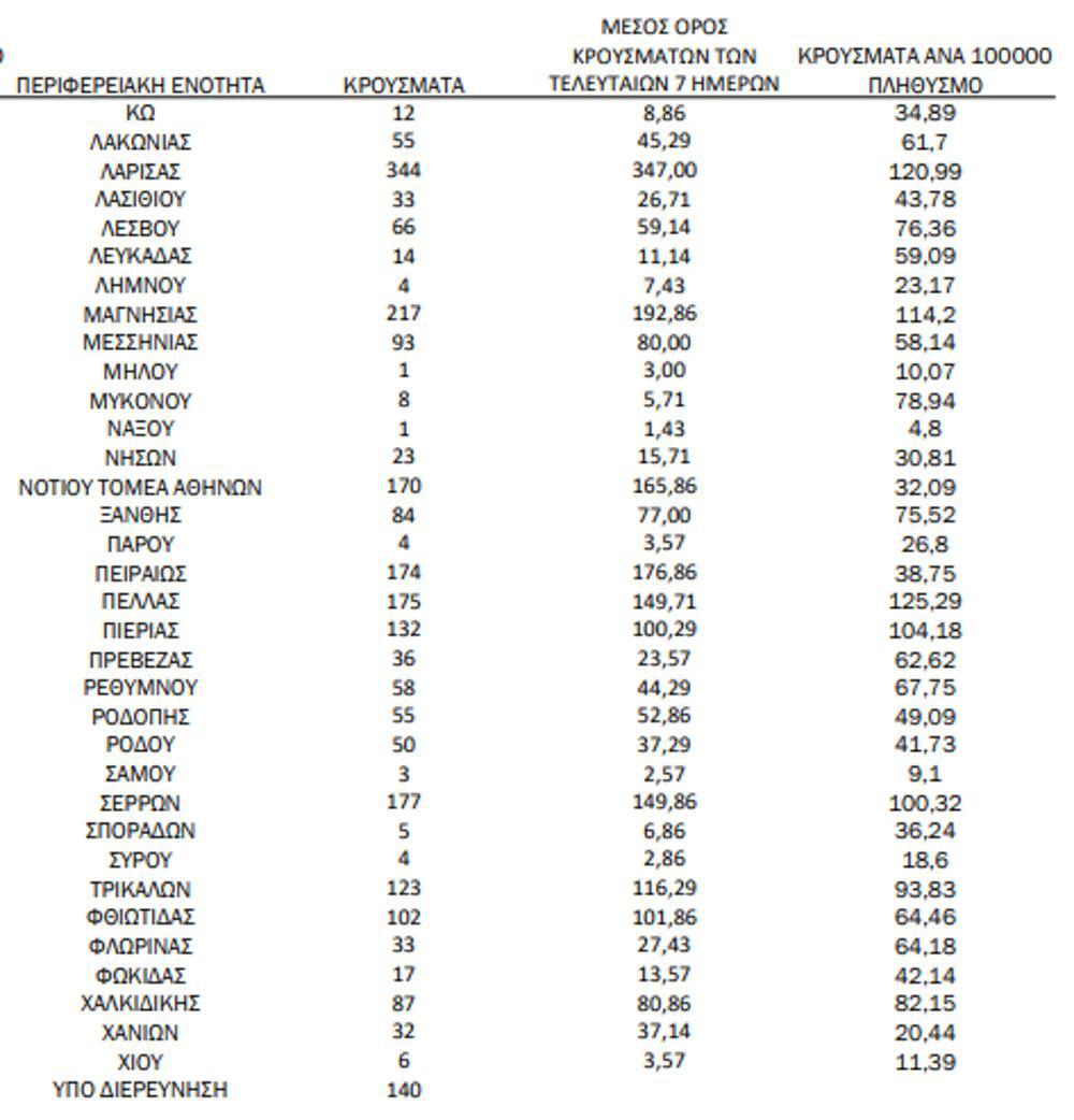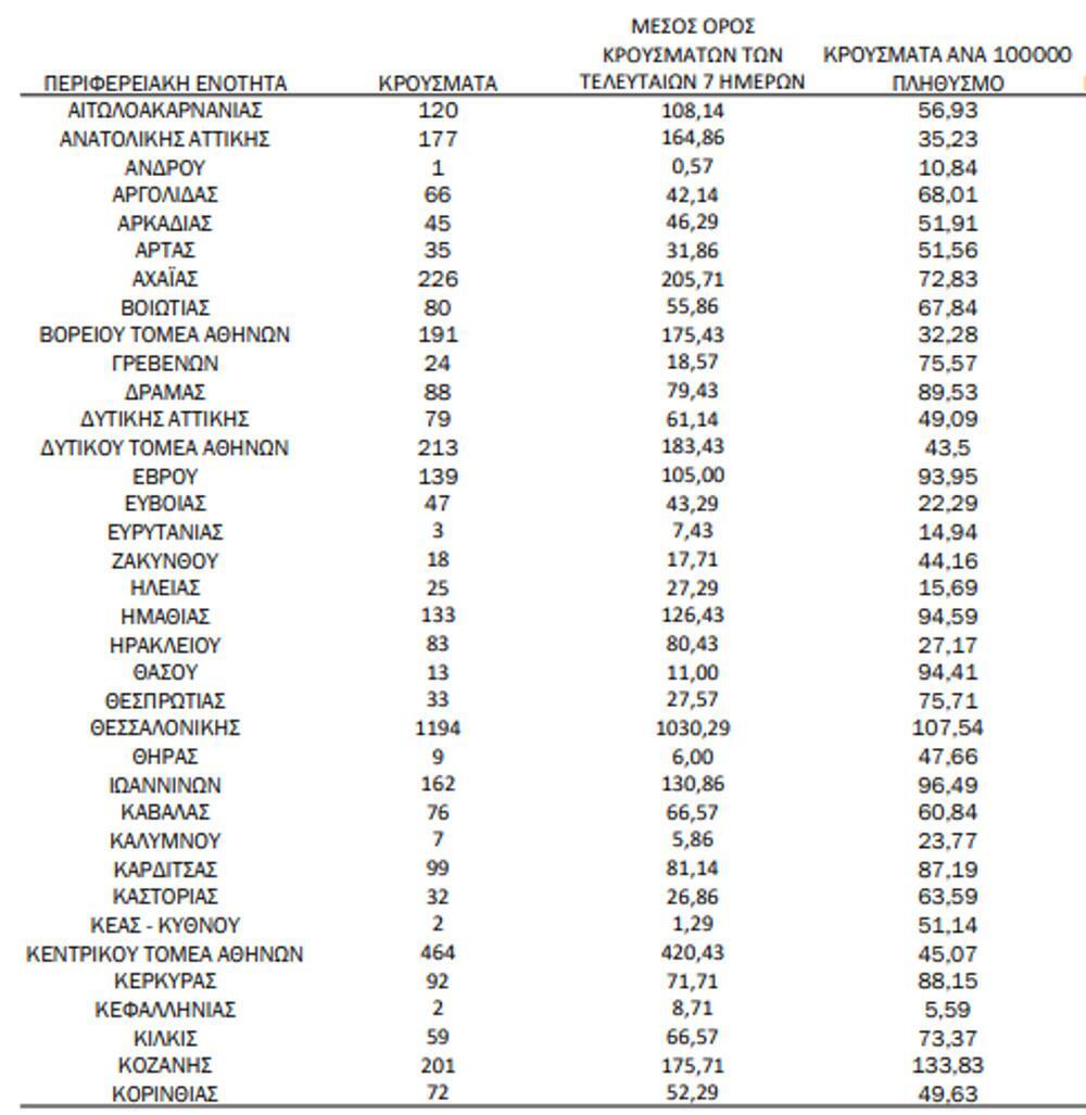 Αναλυτικά, η γεωγραφική κατανομή των σημερινών κρουσμάτων: