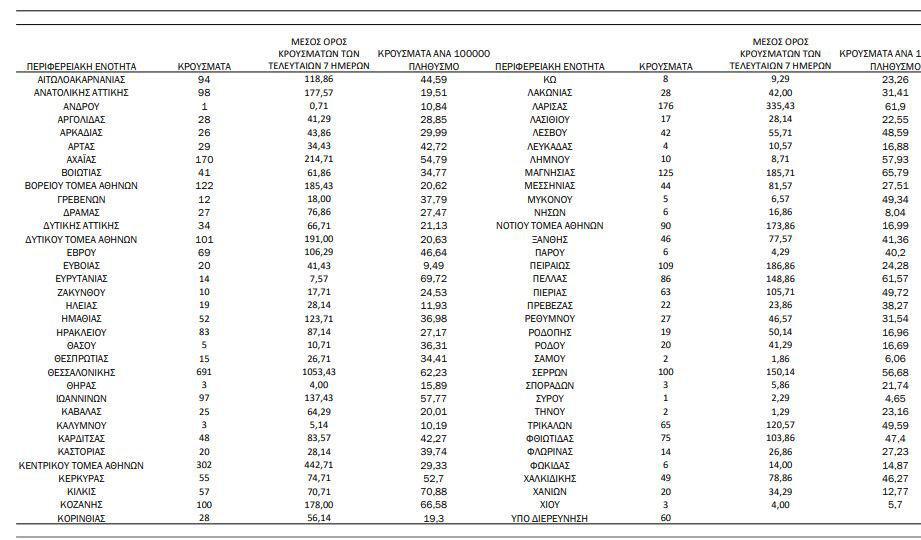 Αναλυτικά, η γεωγραφική κατανομή των σημερινών κρουσμάτων: