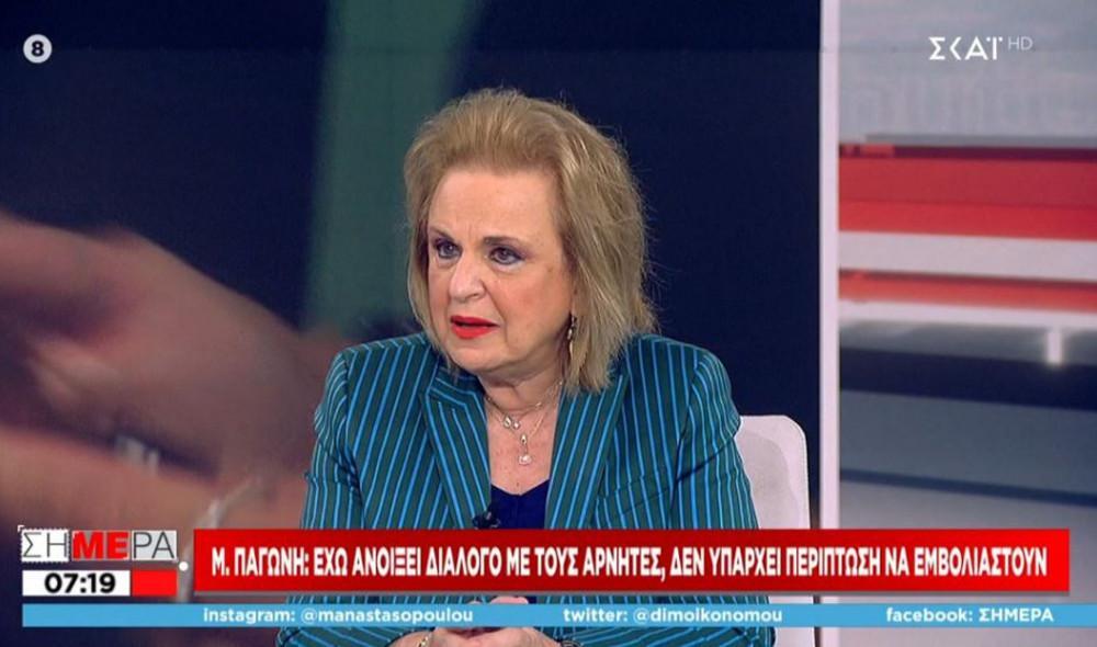 «Η μάσκα σώζει» τόνισε η κ. Παγώνη και επανέλαβε τη θέση της ότι θα έπρεπε να είναι υποχρεωτική η χρήση της και στους εξωτερικούς χώρους τόσο για τους εμβολιασμένους όσο και για τους ανεμβολίαστους.