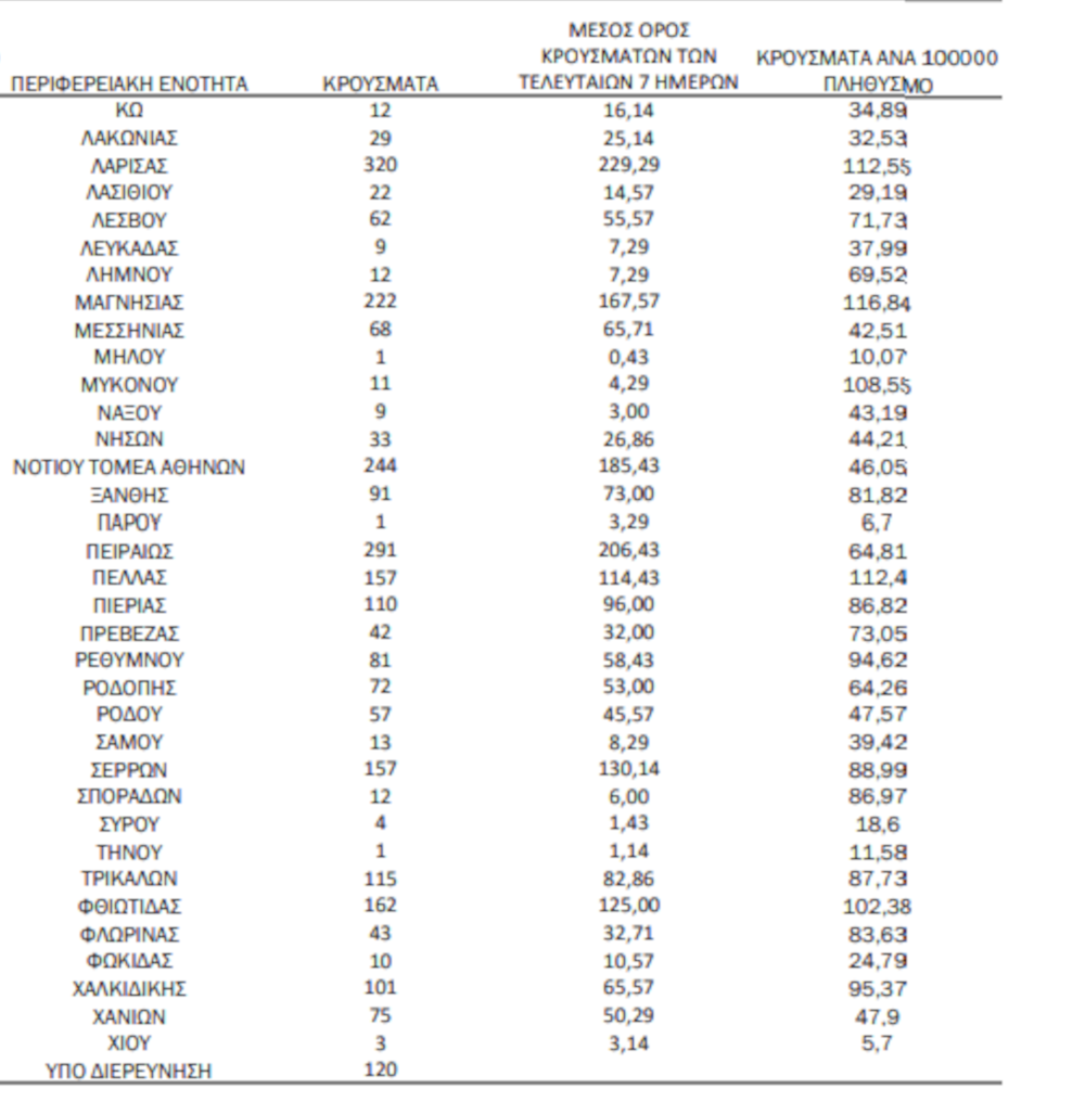Αναλυτικά, η γεωγραφική κατανομή των σημερινών κρουσμάτων: